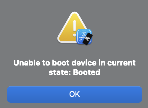 위 화면(Settings) 에서 Simulator Lifetime : When Simulator starts boot the most recently used simulator 체크를 해제 하면 더이상 안뜬다.
